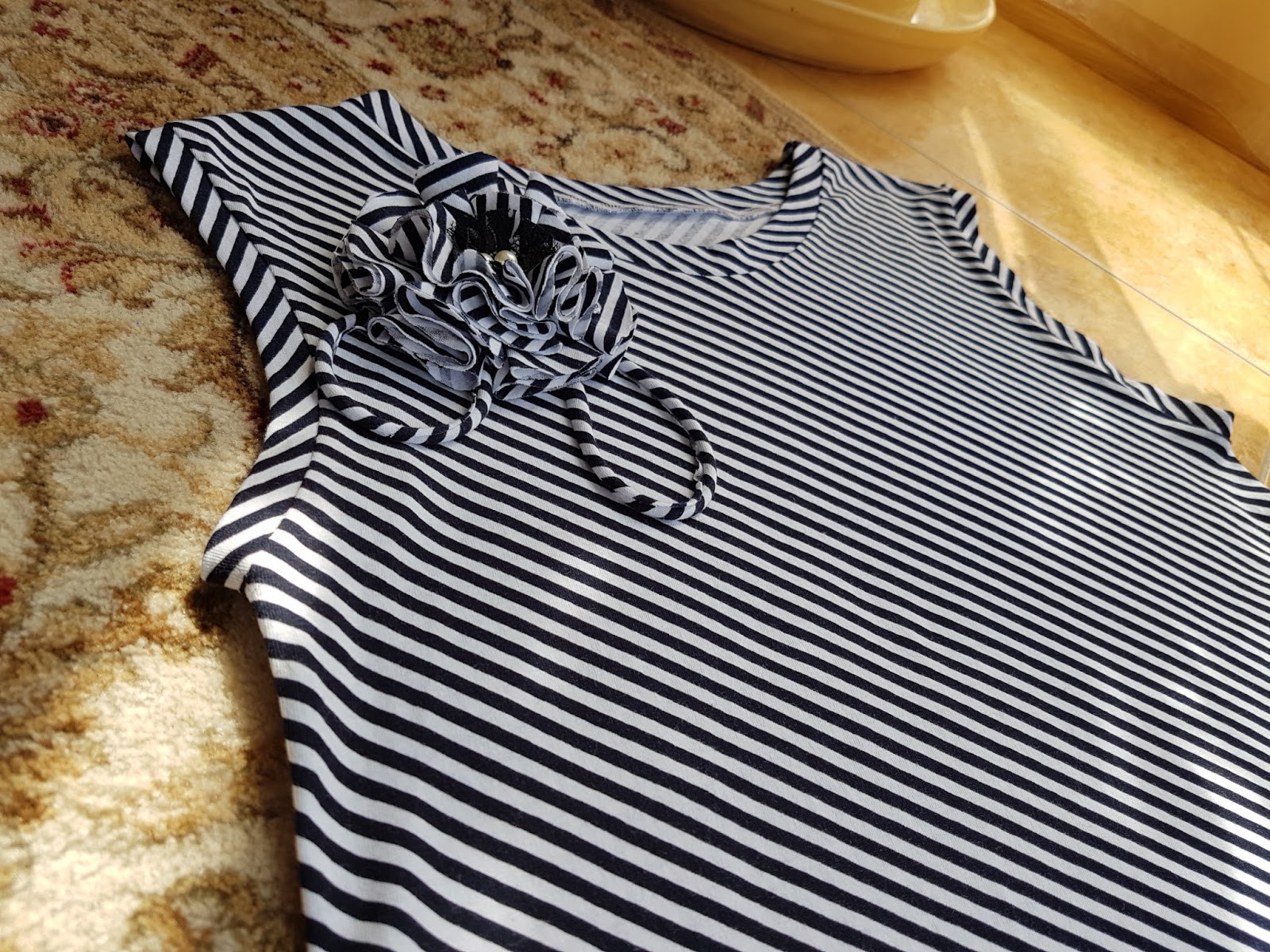 Всем доброго времени суток! Покажу очередную порцию своих небольших "пошивушек". Начала я свой пост с этого забавного стишка по следующей причине. Очередную борьбу я затеяла с трикотажными запасами. Материал покупала мама. Сшила я ей футболочку "а-ля матросская" (ее покажу как-нибудь потом, не успела сфотографировать), сарафан на пляж, а из остатков - себе топик.